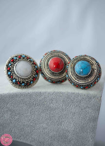ANILLO ÉTNICO CON PIEDRA CENTRAL REDONDA Y COLORES ALREDEDOR