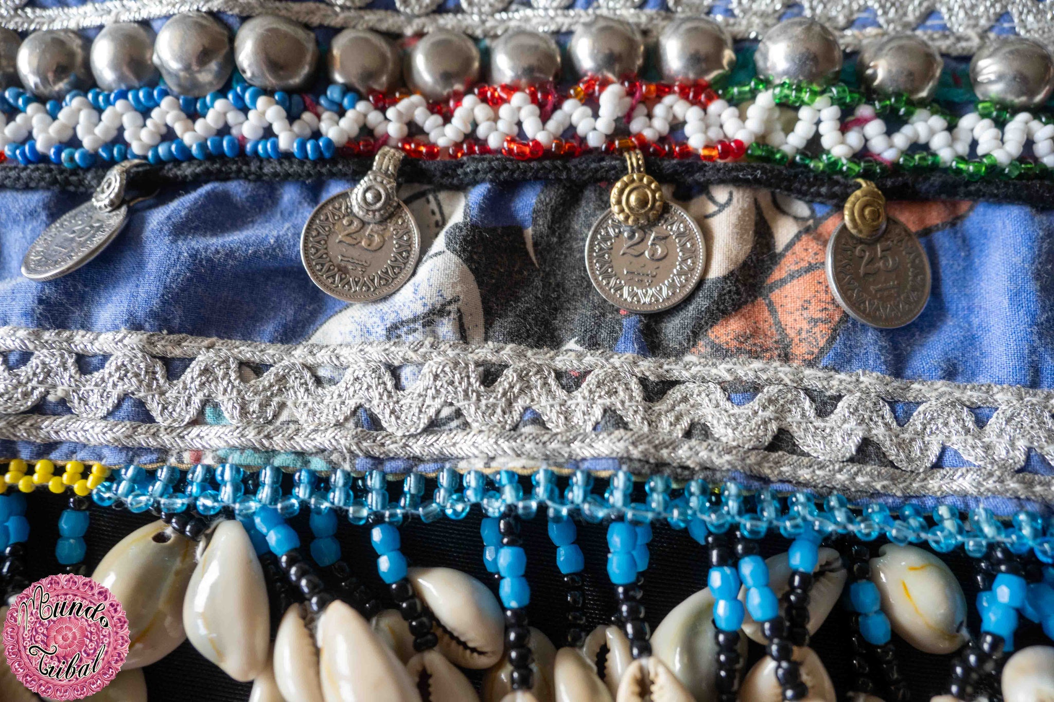 Cinturón étnico de abalorios de colores, ligero y súper cómodo, con cuelques o flecos que envuelven tus caderas.
