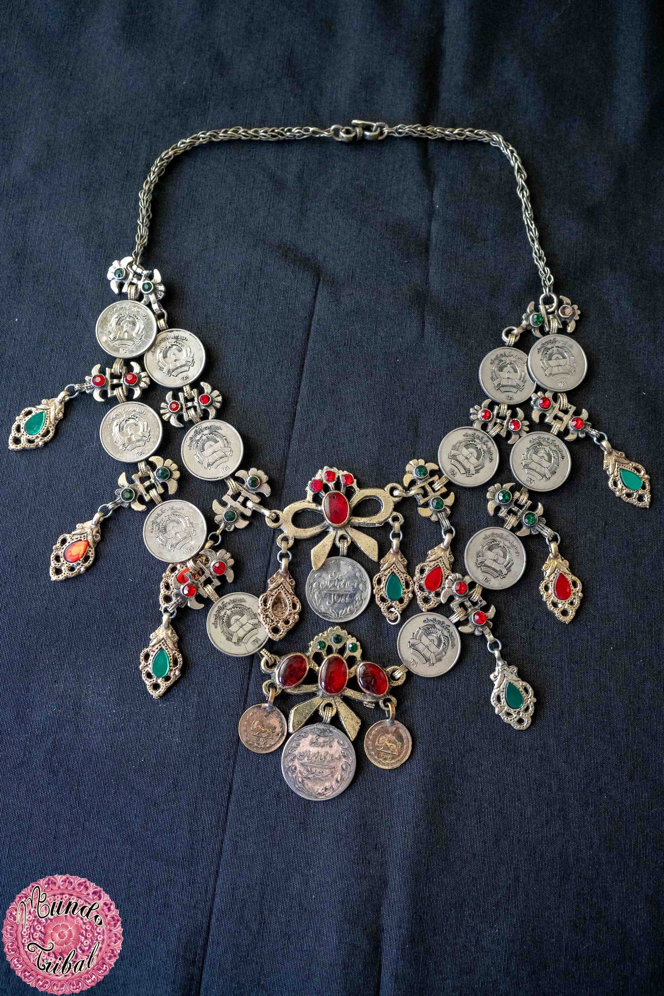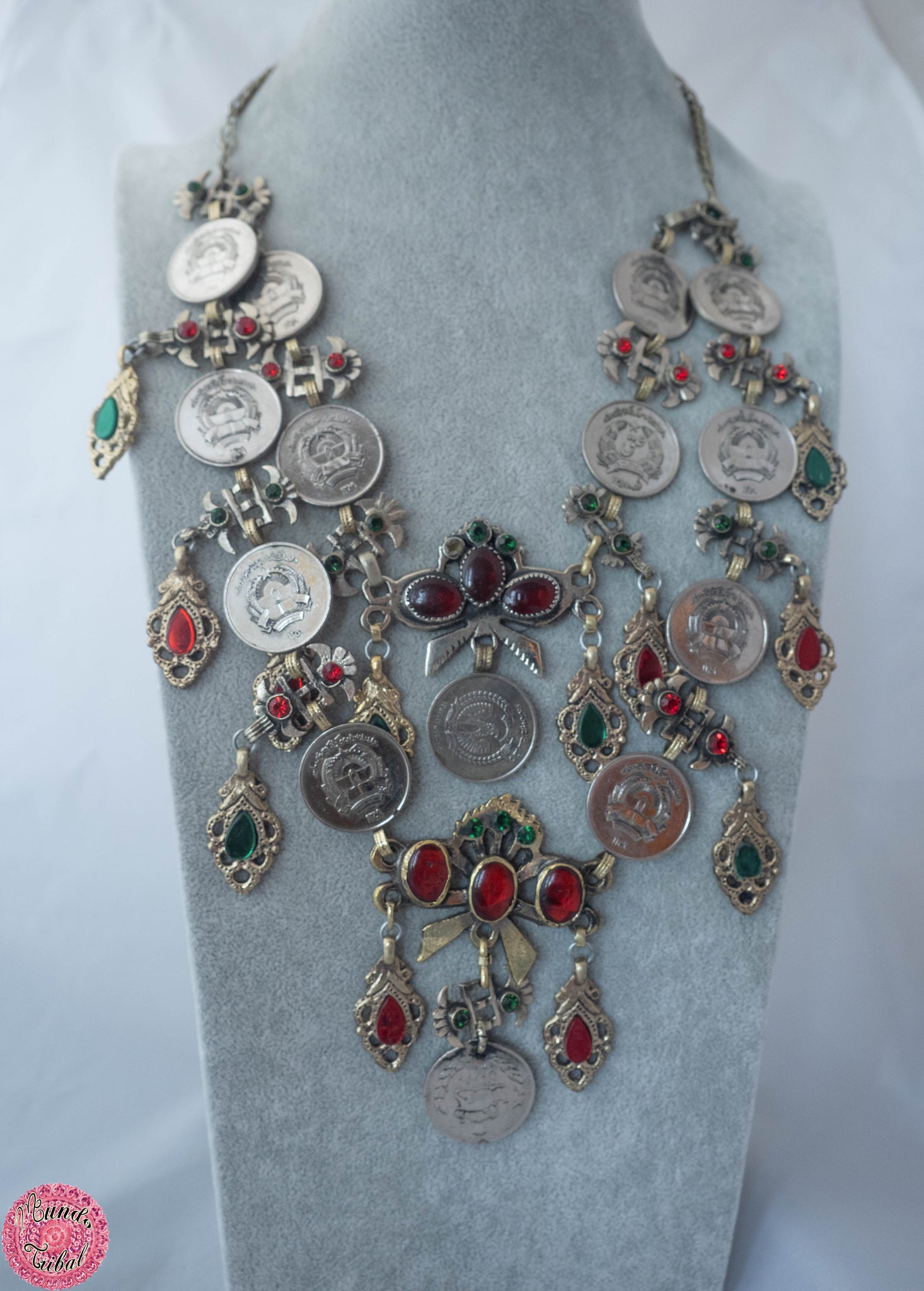 Precioso collar Kuchi afgano que cubre todo el pecho.