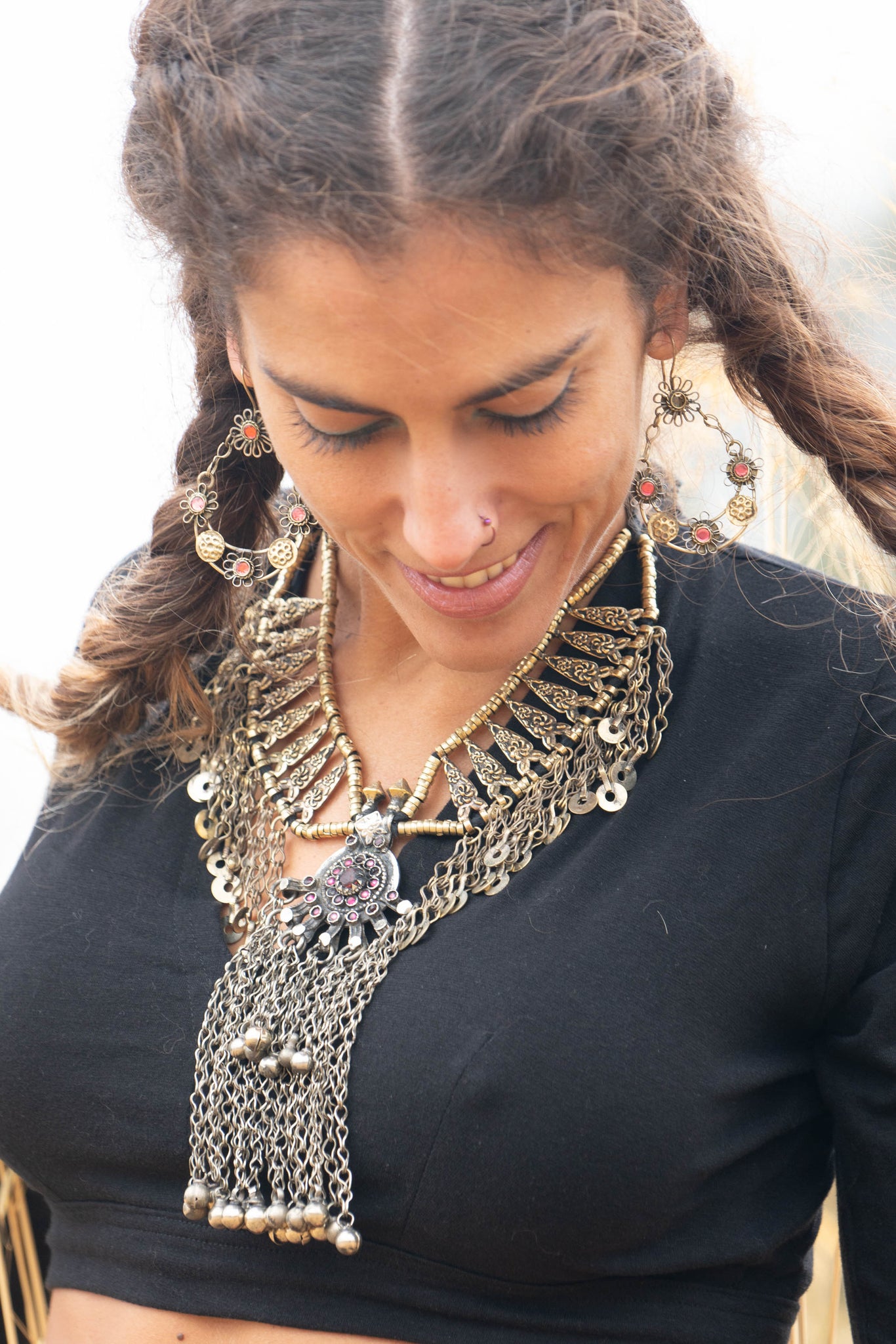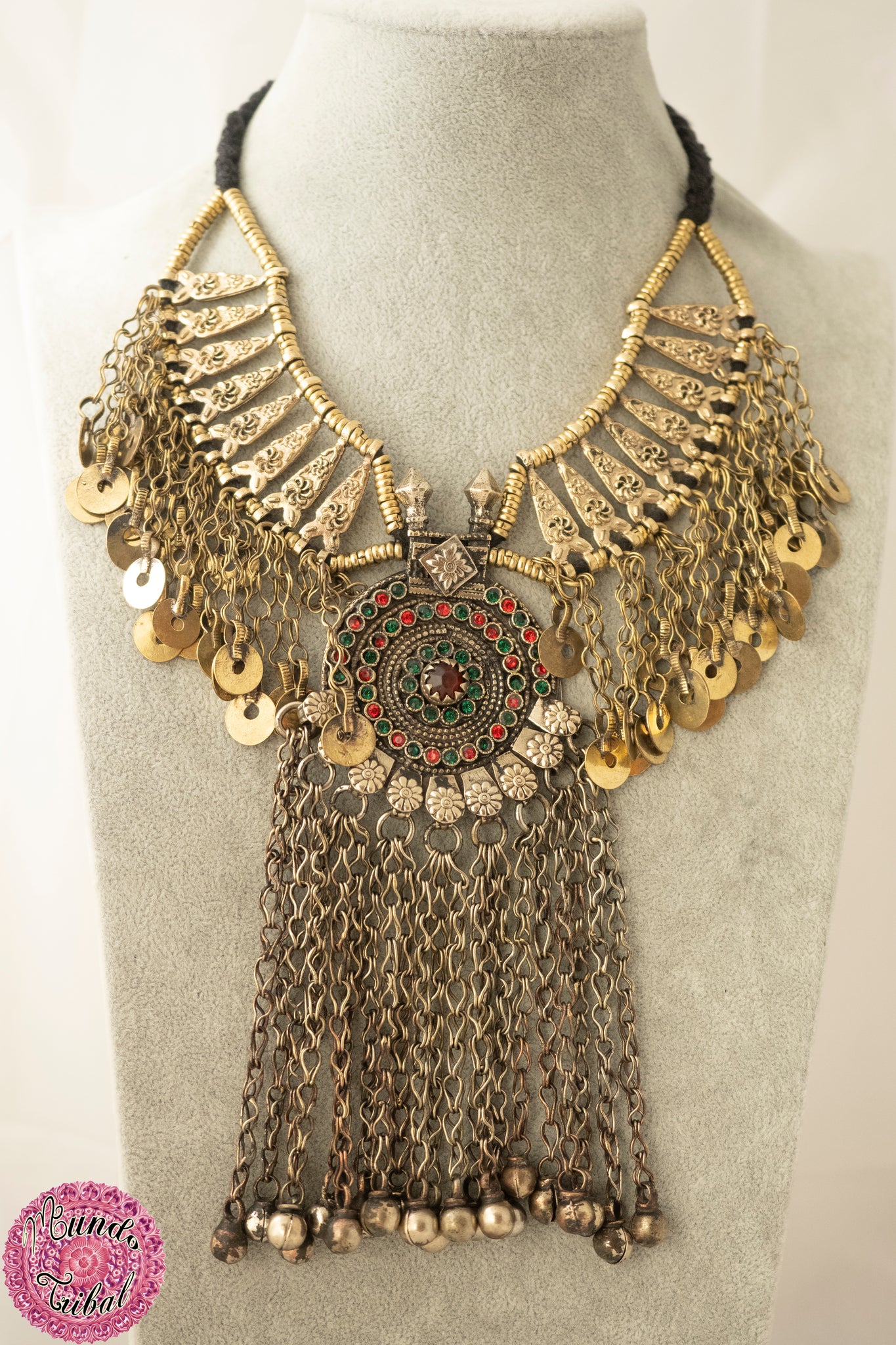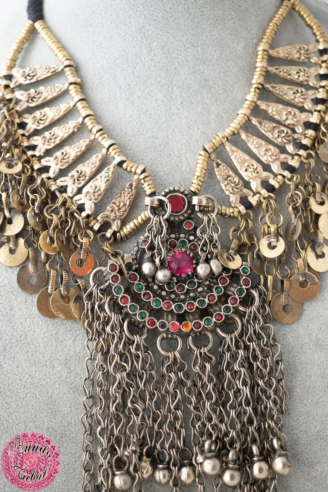 Collar con un cuelgue Kuchi, con piedras incrustadas de colores, perfecto para tu estilo Boho Chic, ¡o para bailar tribal!