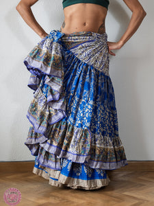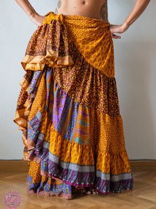 * FALDA SARI: Diseño creado por BlackTup, desde México. Mundo Tribal fue el primer proveedor en España. Las telas sari de este modelo son tornasoladas, recicladas de saris de India.
