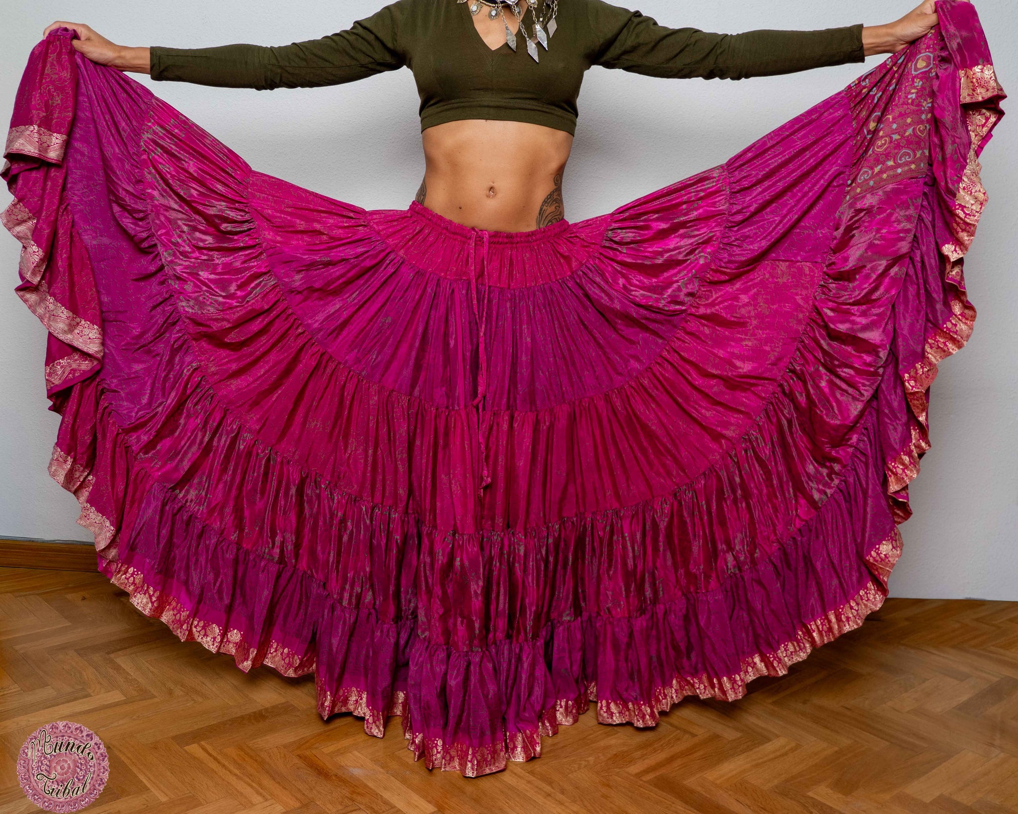 Faldas extra vuelo (más de 25 yardas) de tela sari especial estampada, súper ligera con un vuelo espectacular, perfecta para danza tribal, fcbd, ATS, zíngaras, etc..