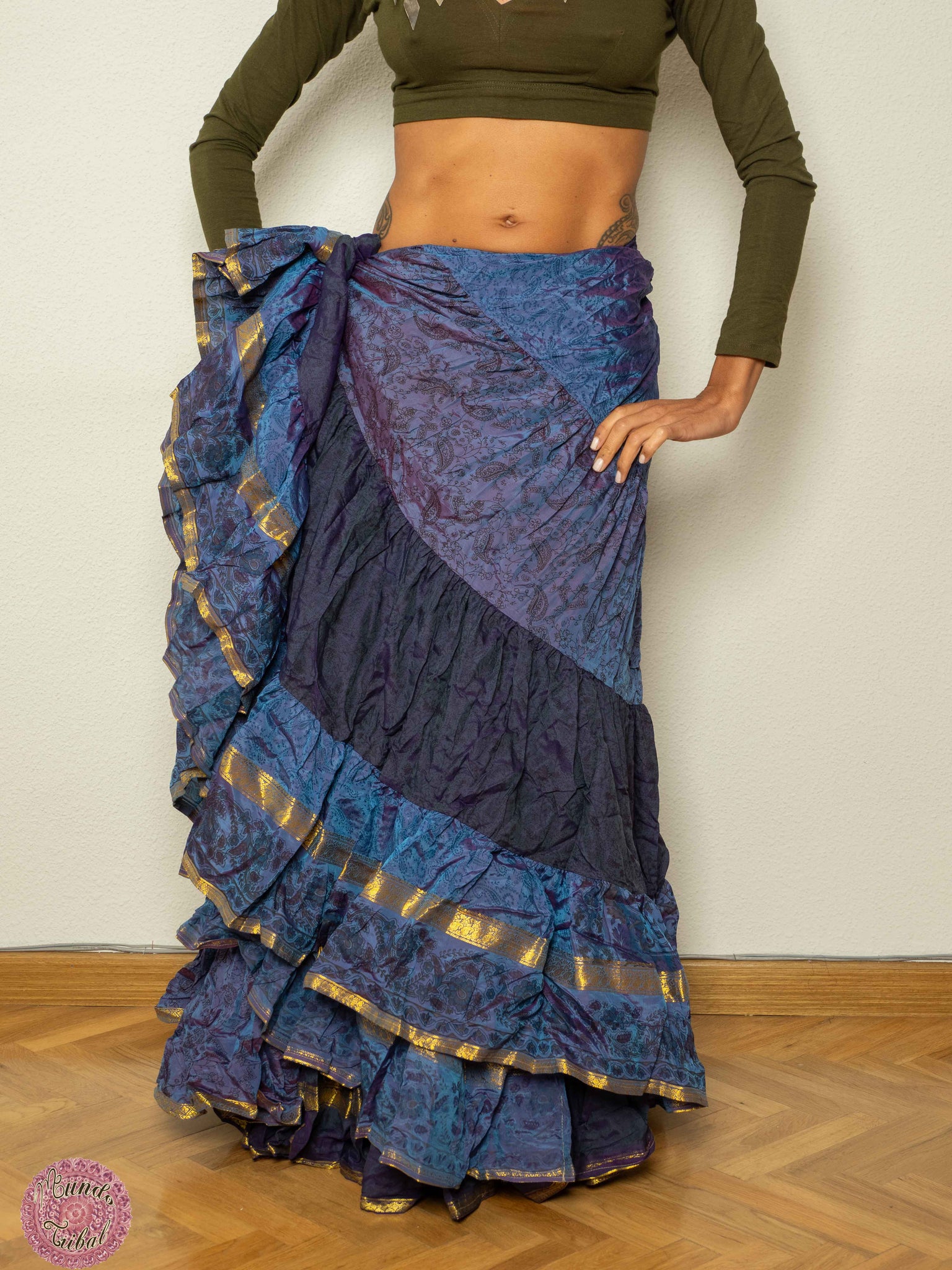 Faldas extra vuelo (más de 25 yardas) de tela sari especial estampada, súper ligera con un vuelo espectacular, perfecta para danza tribal, zíngaras, etc..