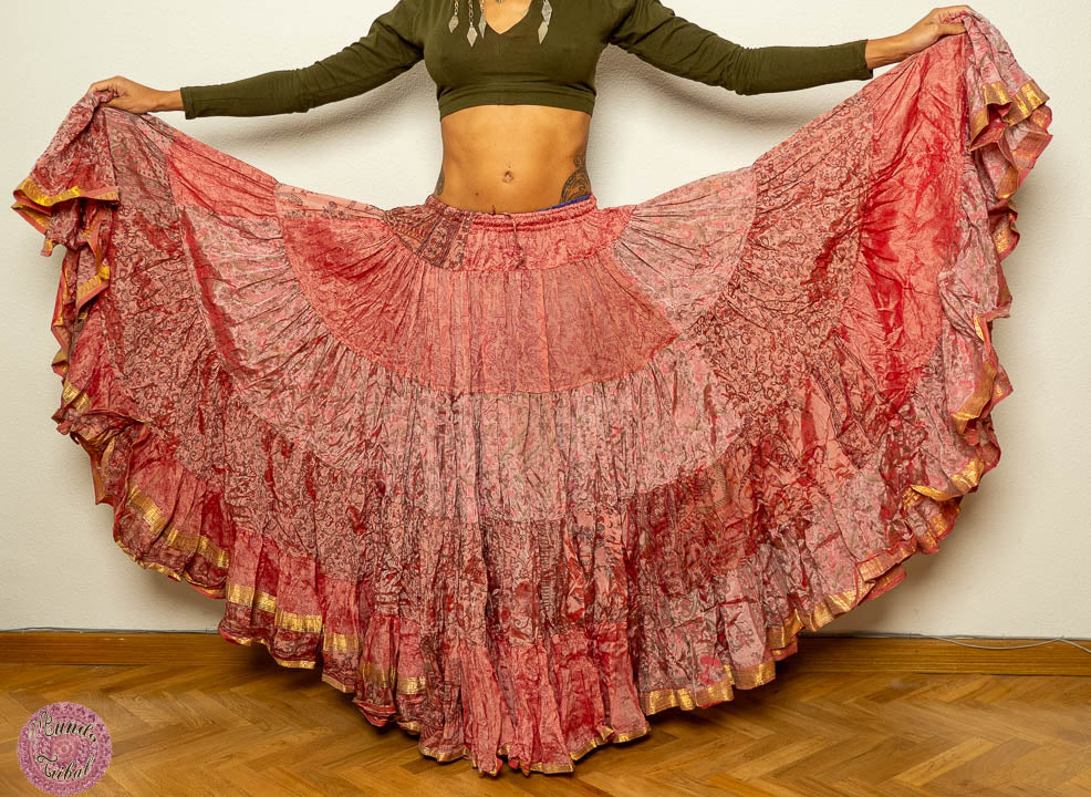 Faldas extra vuelo (más de 25 yardas) de tela sari especial estampada, súper ligera con un vuelo espectacular, perfecta para danza tribal, zíngaras, etc..