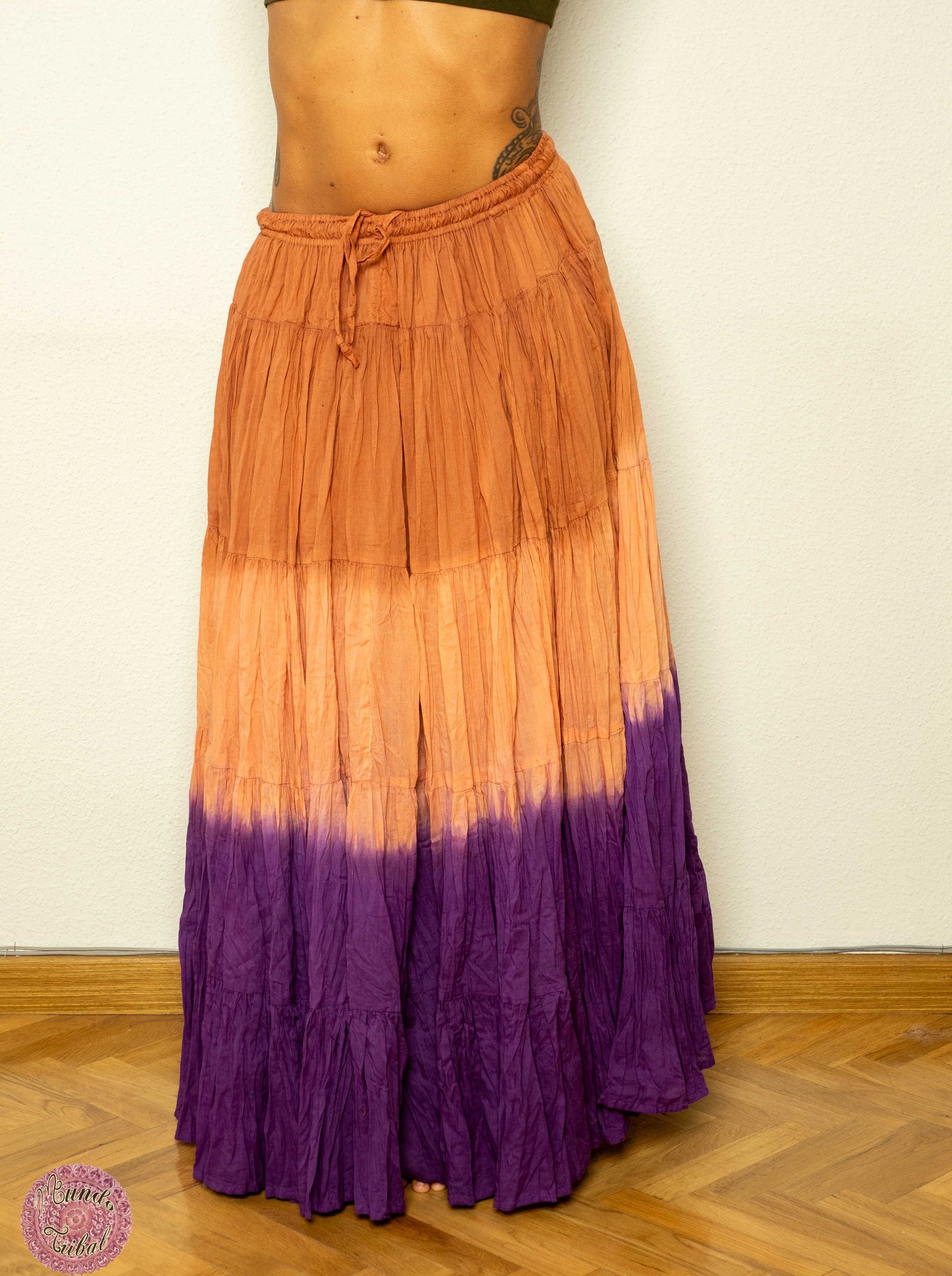 Con un poco menos de vuelo, pero con el mismo patrón, ofrecemos ¡¡por primera vez!! estas increíbles faldas de algodón de diferentes tonos. Te sirven para tu danza tribal como para la vida.