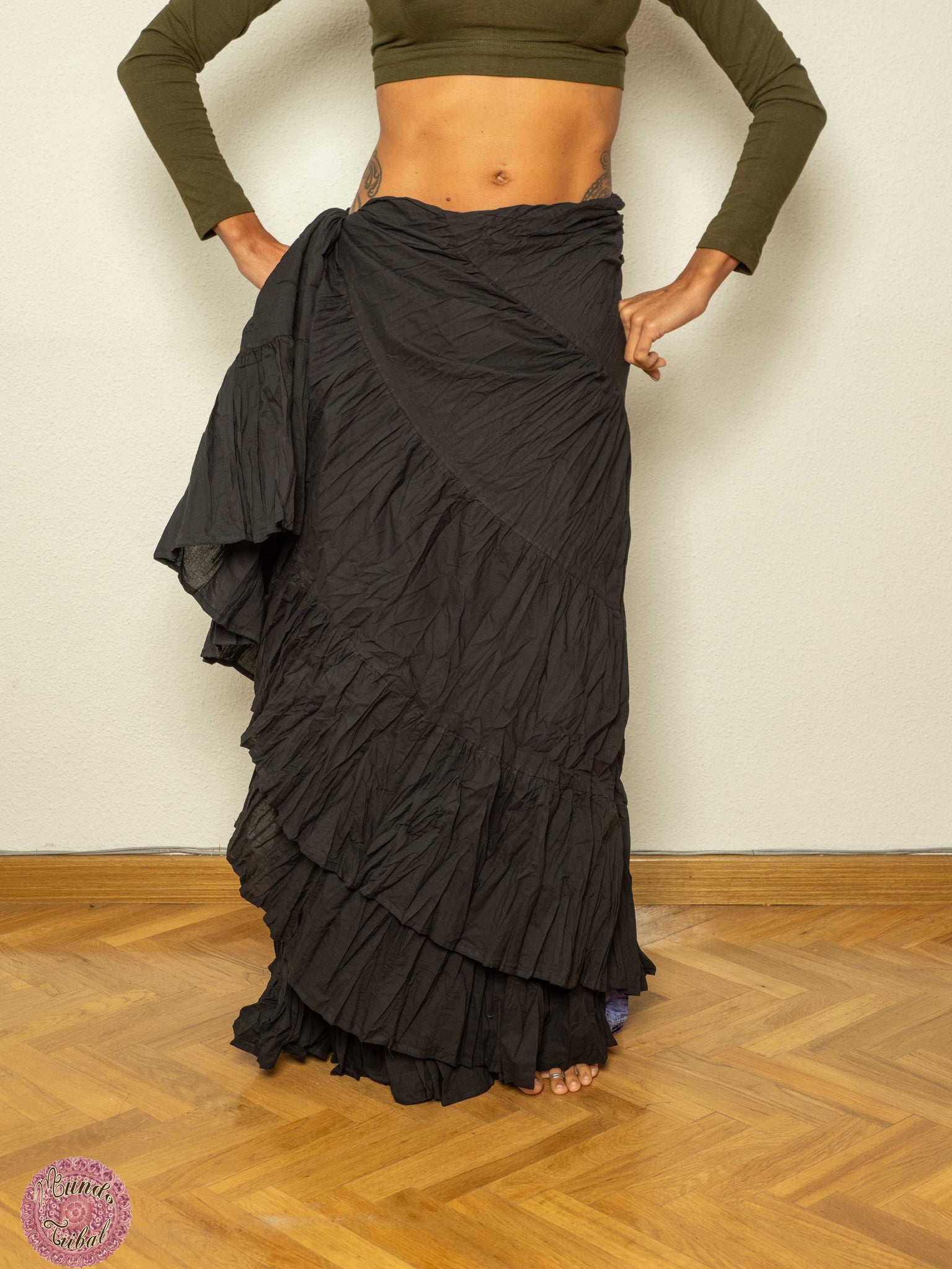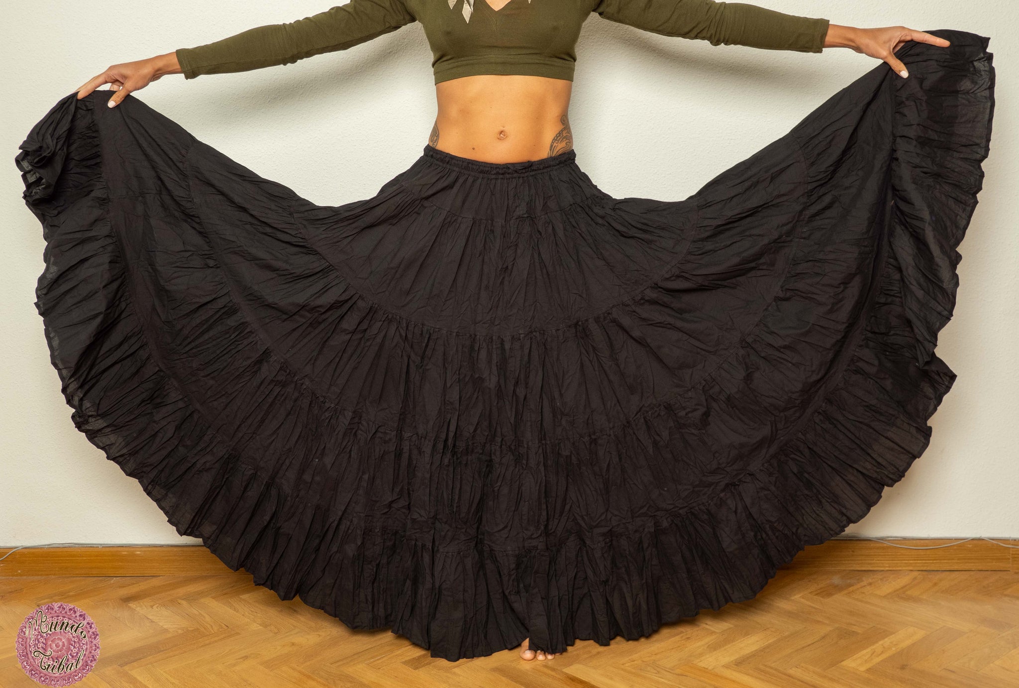 Espectacular falda de 25 yardas (o más) de algodón negro, súper ligero para darle más vuelo.