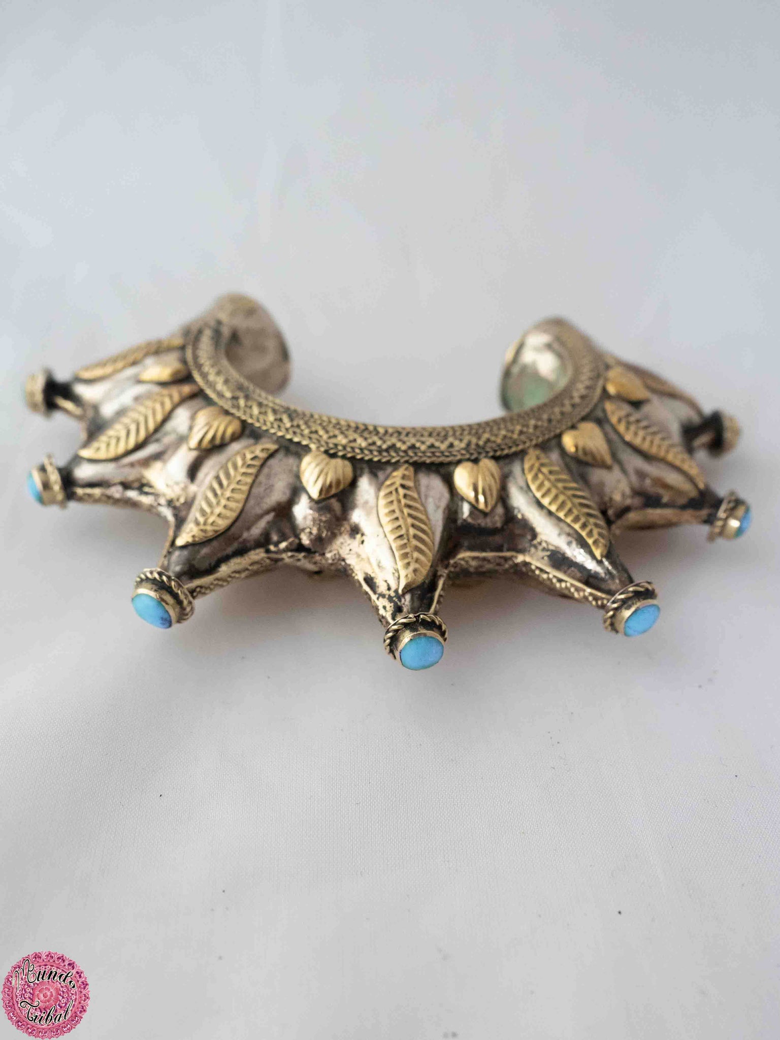 Brazalete kuchi de pinchos que parece una corona, plateada y dorada y las puntas de color.