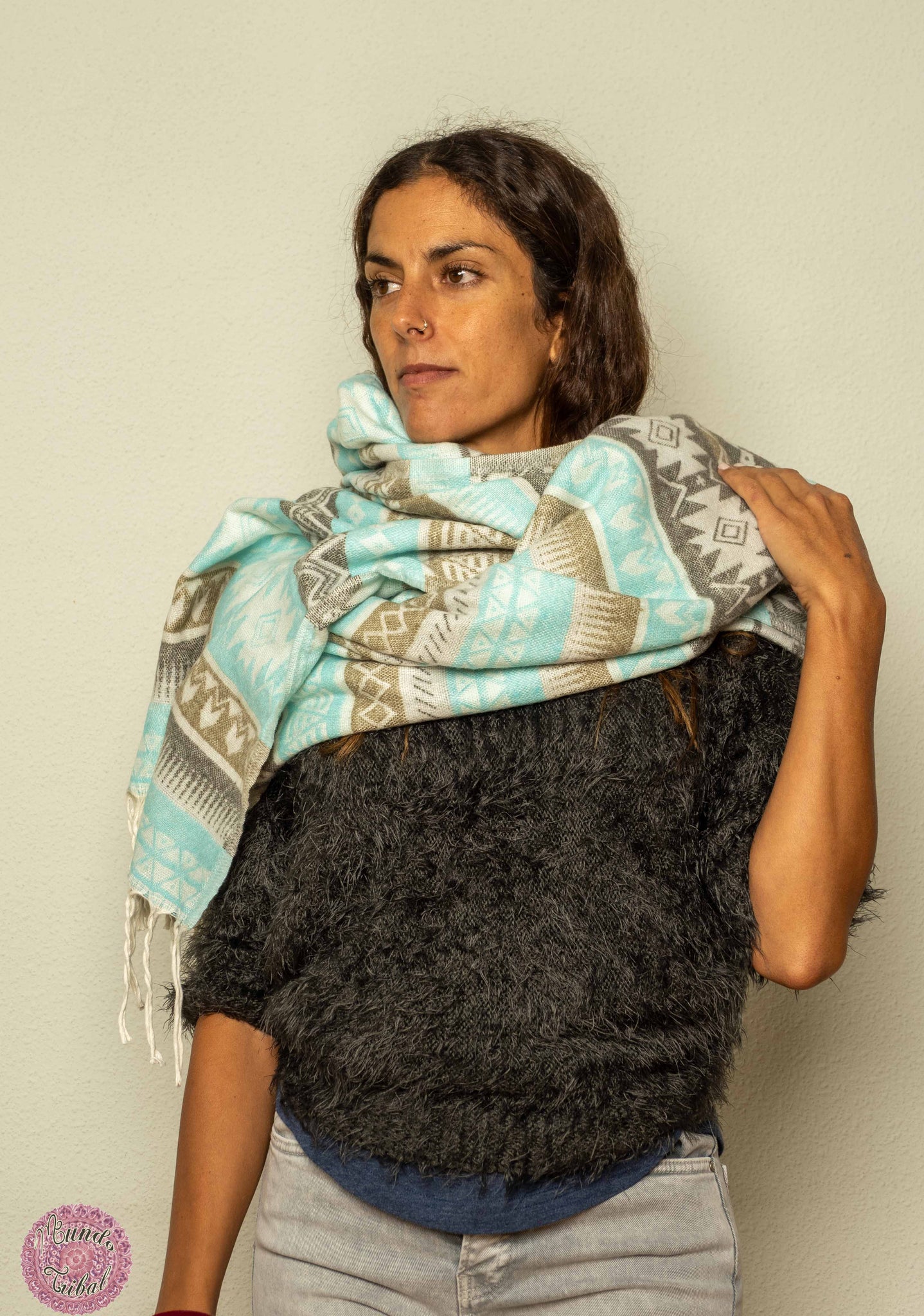 PASHMINA O FULAR INVIERNO - AZUL CELESTE Y BEIGE